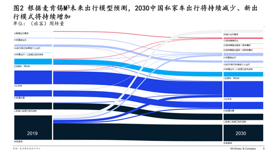 在整体未来出行里面,包括今天讲的旅客周转量,其实是以周转公里数作为单位,所有今天用户无论选择什么出行模式,都会有相关的出行里程。今天这些里程靠什么商业模式解决以及在这个商业模式下,到2030年,会以什么速度、什么方式慢慢演进。无论是2019年还是2030年,在总体公里数中,私家车占比还会很大,2030年会有一部分需求从私家车慢慢分流到其他商业模式。