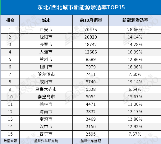 西北地区前10月新能源合计销量能达到14.3万辆,渗透率能突破15%,关键在于西安的贡献。