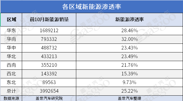 车链区块整理了1-10月各区域新能源渗透率情况,西北和东北垫底,远低于25.22%的平均值。两大地区,西北新能源汽车销量和渗透率表现更好。这是因为,西北包括五个省份,更是有陕西拉动。