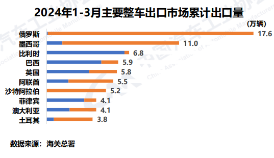 去年,中国超过日本成为世界上最大的汽车出口国,而拉丁美洲也成为中国汽车出口的主要目的地。今年第一季度,以价值(美元)计算,巴西是中国汽车的第四大进口国,墨西哥紧随其后。若按出口量来看,巴西仍然是中国汽车第四大出口市场,且是新能源汽车出口第二大市场。