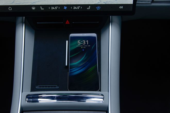后排腿部膝部空间充足,座椅支持两挡调节,配备座椅加热与通风功能,后排还配备了HUAWEI MagLink魔吸车载接口,满足后排娱乐需求。