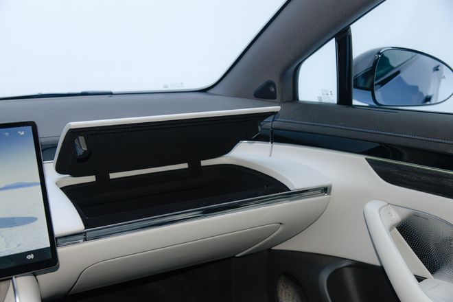 副驾前方超平仪表台面积可放下一台笔记本电脑,平坦的设计和充足的面积让其可置物、可办公。掀开面板后,下方是一个双层空间,同时设置了柔光化妆镜,不仅能提供4L收纳空间,还能充当梳妆台。