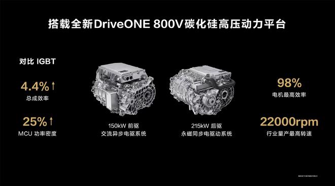 智界S7采用全新华为“巨鲸”800V高压电池平台和搭载全新一代DriveONE 800V碳化硅黄金动力平台。
