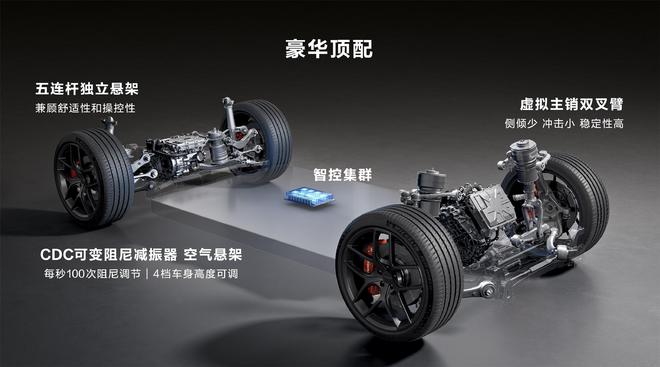 同时,一体式压铸车身,前双叉臂后五连杆、CDC减振器、空气悬架等功能也一应俱全,提升整车安全、舒适和操作稳定性能。