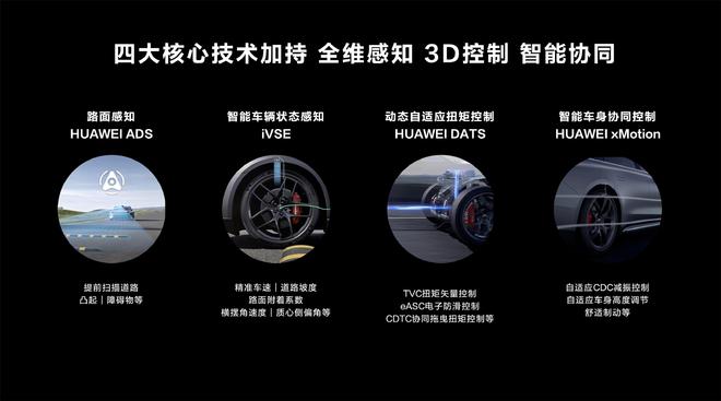 智界S7首发华为途灵智能底盘,由华为德国研究所底盘调校大师调校,结合华为领先的AI与软件能力。途灵智能底盘拥有HUAWEI ADS路面感知、iVSE智能车辆状态感知、HUAWEI DATS动态自适应扭矩控制与HUAWEI xMotion智能车身协同控制四大核心技术加持,为消费者带来易操控、更安全、更舒适的驾乘体验。