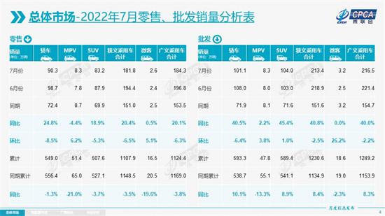 批发方面,7月,厂商批发销量为213.4万辆,同比增长40.8%,环比下降2.5%,走势与产量趋同;1-7月,厂商批发销量累计达到1230.6万辆,同比增长8.4%。