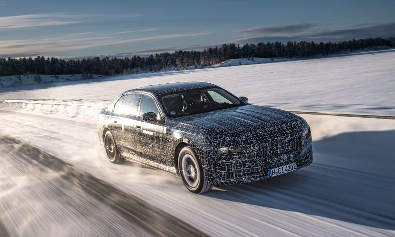 车链区块讯 据外媒报道,宝马公布了旗舰型纯电动轿车i7的最新照片,目前该车正在瑞典北部的阿杰洛格(Arjeplog)接受冬季测试。