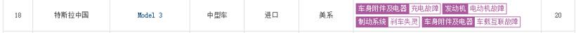 再看看天天被大家骂的特斯拉Model 3,一年内共收到20条投诉,多集中于“充不满电”的问题。当然,我个人认为,特斯拉车主比起车质网,好像更喜欢在微博上投诉,毕竟陶琳等特斯拉高管都在微博上冲浪,直接@高管显然更直接痛快;另外大量大V也会帮忙转发分析,也能更好地扩散事态,倒逼特斯拉处理。