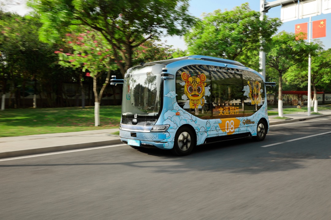 据了解,这是中国首个实现全无人开放运营的智慧出行服务,“文远小巴”由文远知行与宇通集团联手打造,采用纯电动车型,无方向盘、油门、刹车,最高时速达40公里,满足全天时、全天候、全场景的运行需求。