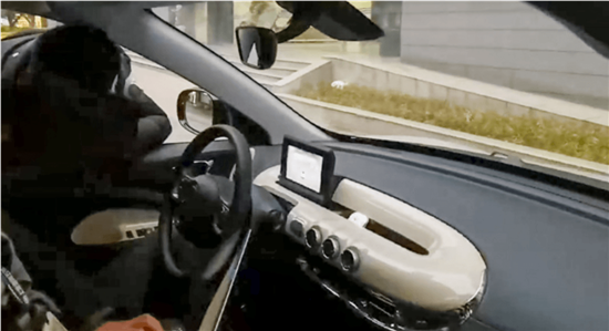 路试车采用上下双色车身,看到了两种路试车身配色,第一种为上方为白色车身,第二种为车尾部设置亮色点缀,整体看上去时尚简约。车轮采用花瓣式轮毂,很是别致。